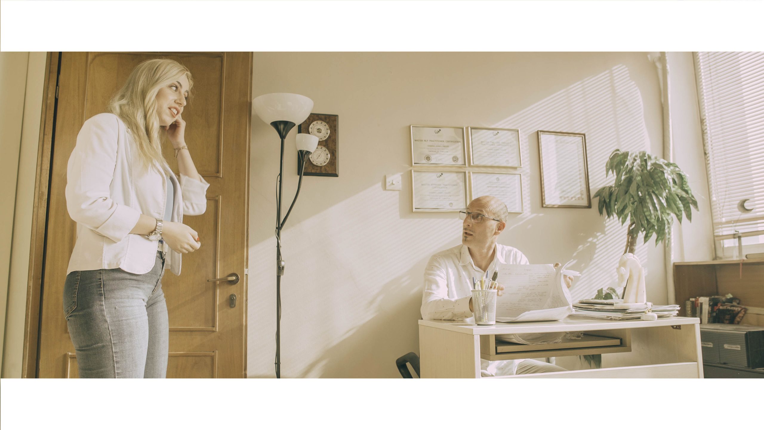 The 20-minute film, where Papadimitriou holds the quadruple role of film director, DoP, screenwriter and editor, revolves around human despair and loneliness. The main character is Jason, who gets immersed into the world of writing while facing inner conflicts, following the loss of his parents and brother in a fatal accident. “I tried to convey the rough patch experienced by the protagonist, while sending out a loud message to all those suffering from depression and other mental illnesses that we’re in this together, as I myself had suffered from depression and I know the feeling.” In order for these emotions to appear on screen, Stylianos Papadimitriou employed a series of targeted techniques. “A low angle oozes the sense of power or threat, whereas a high angle portrays weakness or vulnerability. Lighting and shading, in tandem with the camera’s movement, foreground both psychological tension and tenderness, enhancing the dramatic effect and the psychological state of mind of the characters.”