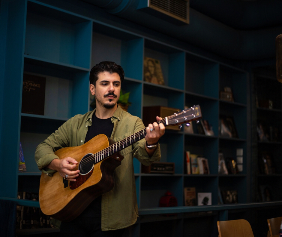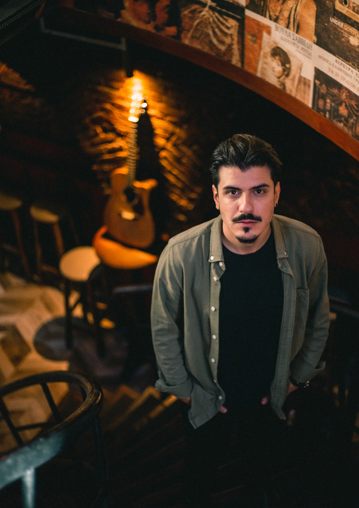 Thirty-five-year-old Thanos Papageorgiou was born in Larissa, but for the past 18 years he has been living in Thessaloniki, working as a singer and a guitar player. He crossed paths with music unexpectedly in 2008, when the sound of a friend’s guitar cast a spell on him during their summer holidays, in a familiar movie-like scenery. Dear friends, a bonfire at the beach, beers, a starry night, the sound of waves blending in with the melodies. That night he felt summoned by an inner call. As if he had unearthed the key to a door never opened before, feeling that it could lead him to unknown and fascinating roads. There are some life-defining moments, “tender and subtle” as Nikos Papazoglou once sang. Two months later, he bought his first guitar and the rest is history as they say.