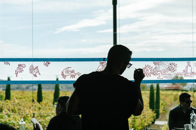 Gerovassiliou Estate celebrated the World Wine Tourism Day on Sunday November 12th 2023, offering the chance to wine-lovers to watch visual artist Giorgos Tzinoudis as he painted live a horizon in red and white, at the café of the Gerovassiliou Wine Museum. In addition, guided tours in the vineyard, the wine production area and the Gerovassiliou Wine Museum, as well as wine-tasting sessions, took place.